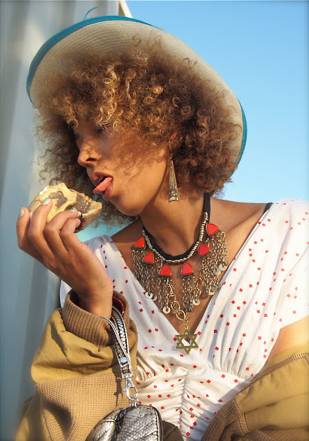 lolita sunnies- Pop Killer. pearls- from mom. earring- Sirens and Sailors. blouse- Top Shop. vintage Wrangler cut offs- Slow. belt and rings- vintage. heels- Madison Harding.